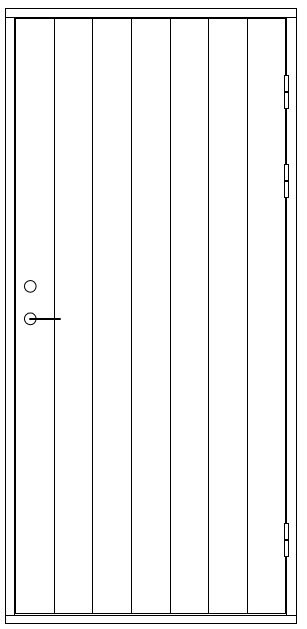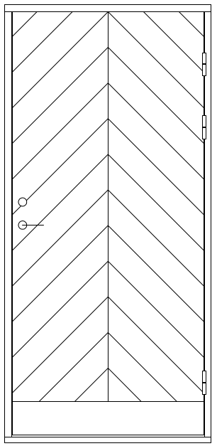 Utgångspunkten är ett elegant, slätt dörrblad där utsidan kan anpassas med dekorativa fräsningar – exempelvis panel- eller spegelmönster – för att ge en unik och personlig touch. Standardutförandet har en slät insida, men som tillval kan även invändiga fräsningar installeras för att matcha utsidans design.