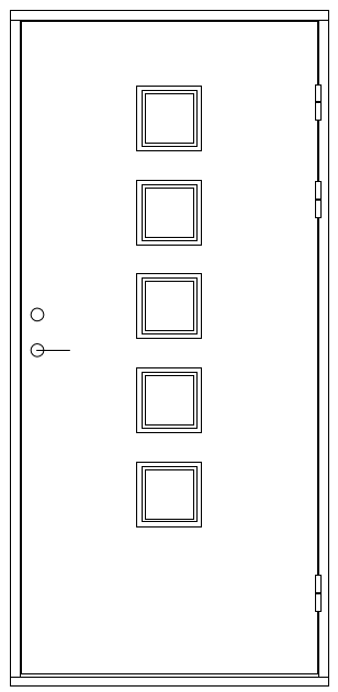 Modell “Design” utgör grunden i vårt sortiment av ytterdörrar och bygger på samma robusta konstruktion som alla våra modeller. Genom att använda dubbla inlimmade aluminiumplåtar på båda sidor om ramträet och isoleringen skapas en effektiv fuktspärr som gör dörrbladet extra formstabilt.