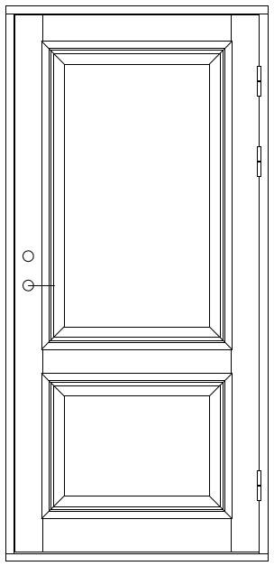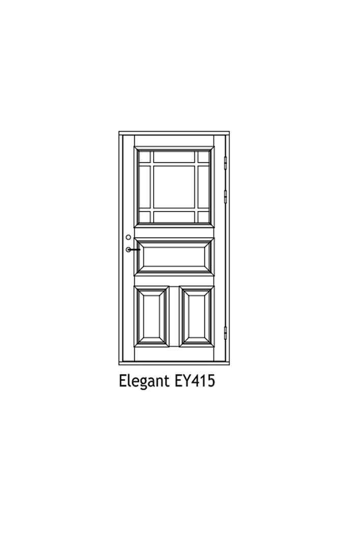 Modell “Elegant” kan även tillverkas som invändig tambur-/lägenhetsdörr, anpassad efter de ljud- och brandkrav som önskas. Utseende och design på din dörr utformas helt efter dina specifika önskemål – vi hjälper gärna till att utforma just din egen dörr.
