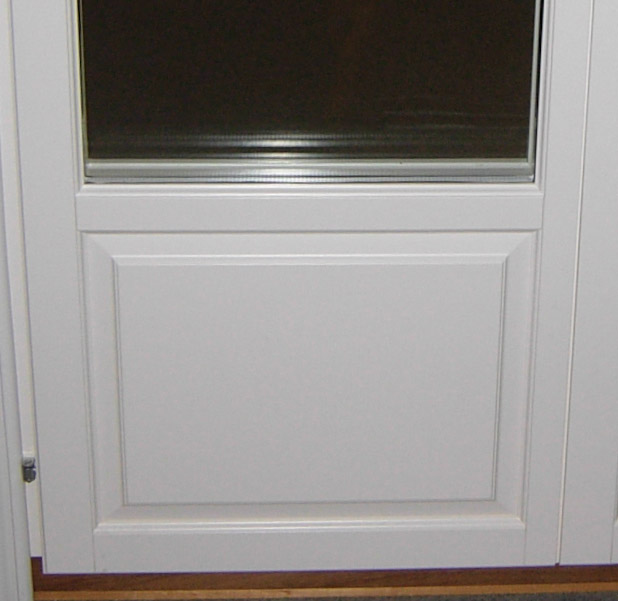 Som tillval erbjuder kan du få utsmyckning på den nedre delen på fönsterdörren till både insidan och utsidan. Bilden visar en slät diagonalställd spegeldekor.